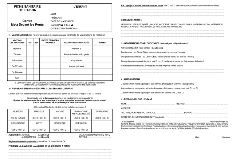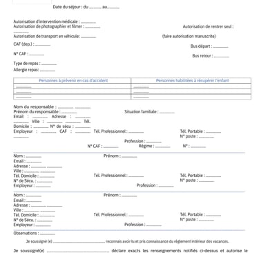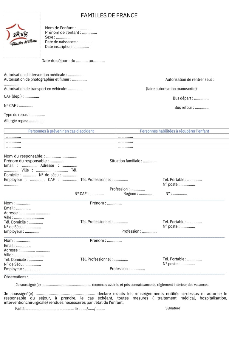 Dossier d'inscriptions séjours